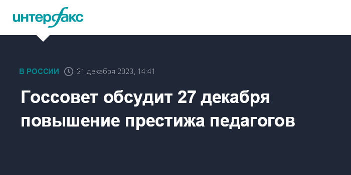 Госсовет обсудит 27 декабря повышение престижа педагогов