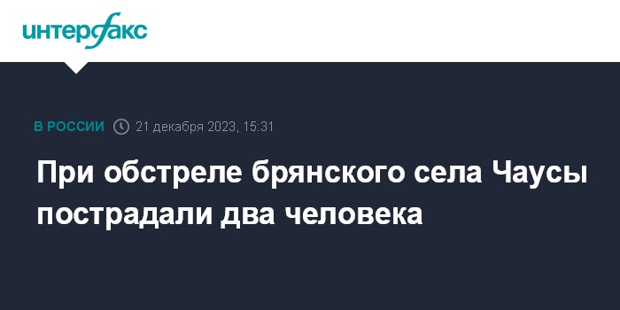 Москва. 21 декабря. INTERFAX.RU - Губернатор Брянской области Александр Богомаз сообщил об обстреле села Чаусы Погарского района.