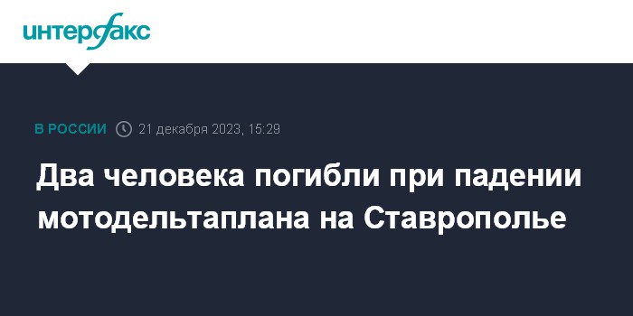 Два человека погибли при падении мотодельтаплана на Ставрополье