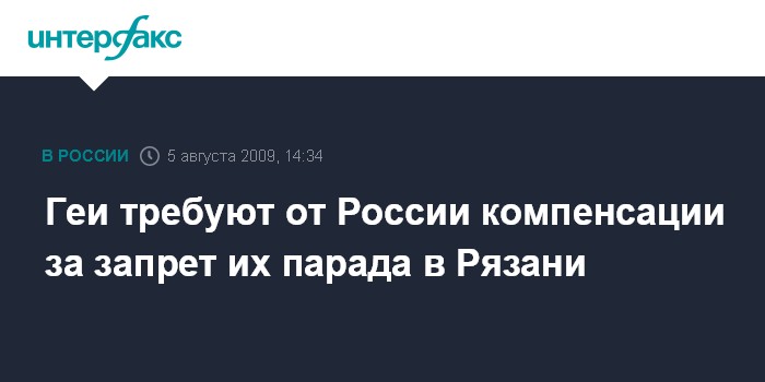 Москва. 5 августа. INTERFAX.RU - Представители гей-сообщества направили в Европейский суд по правам человека (ЕСПЧ) жалобу на запрет шествия сексуальных меньшинств, потребовав от России компенсацию в размере 100 тыс. евро.