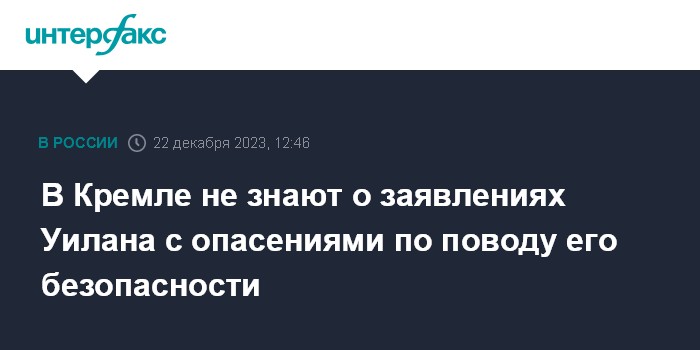 В Кремле не знают о заявлениях Уилана с опасениями по поводу его безопасности