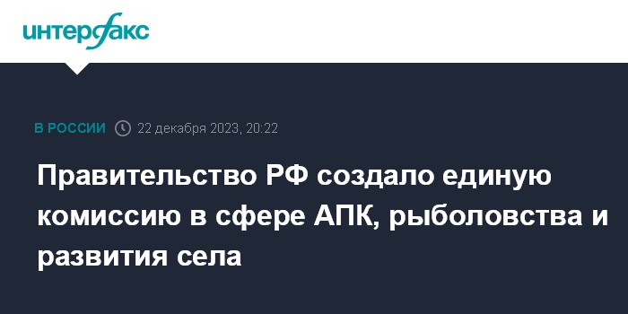 Правительство РФ создало единую комиссию в сфере АПК, рыболовства и развития села