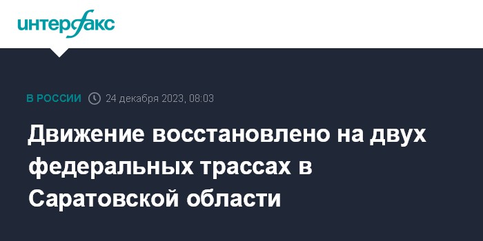 Движение восстановлено на двух федеральных трассах в Саратовской области