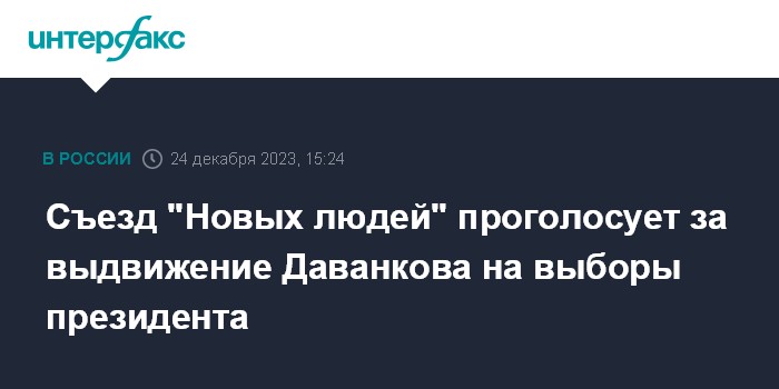 Москва. 24 декабря. INTERFAX.RU - Съезд "Новых людей" будет голосовать за одного кандидата для выдвижения на выборы президента РФ - вице-спикера Госдумы Владислава Даванкова.