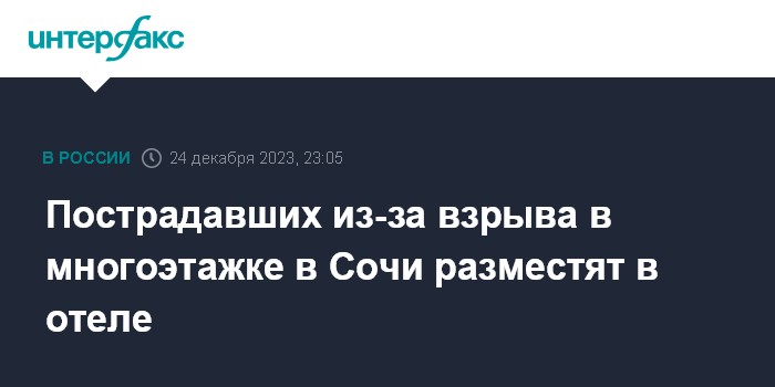 Пострадавших из-за взрыва в многоэтажке в Сочи разместят в отеле