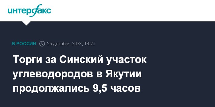 Торги за Синский участок углеводородов в Якутии продолжались 9,5 часов