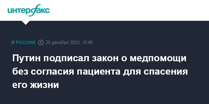 Путин подписал закон о медпомощи без согласия пациента для спасения его жизни