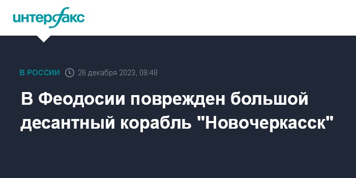 Москва. 26 декабря. INTERFAX.RU - Министерство обороны России сообщило, что минувшей ночью в порту Феодосии был поврежден большой десантный корабль "Новочеркасск".