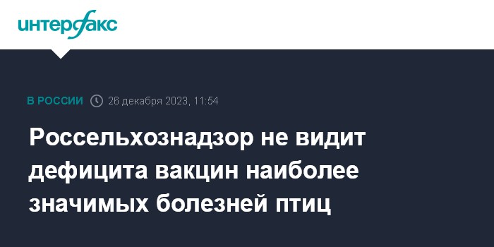 Россельхознадзор не видит дефицита вакцин наиболее значимых болезней птиц