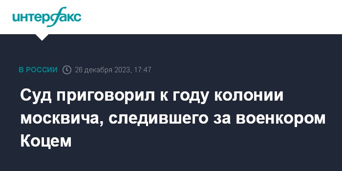 Суд приговорил к году колонии москвича, следившего за военкором Коцем