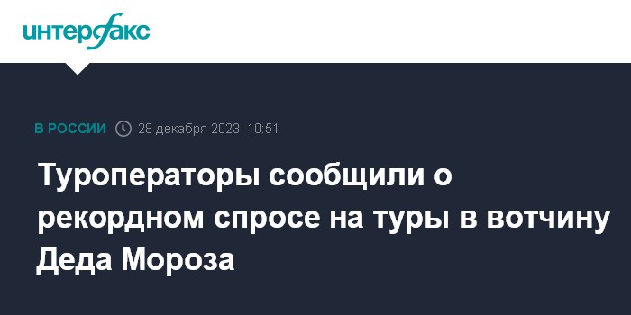 "Спрос на новогодние туры в резиденцию Деда Мороза подрос в этом году примерно на 30%, это рекордный показатель. Нагрузка на нашего Деда Мороза будет максимальной за последние 7-8 лет. Туроператорам к середине декабря стало нечего продавать - раскуплены и билеты на поезда, и места в отелях города и его окрестностей", - рассказал генеральный директор компании "Дельфин" Сергей Ромашкин.