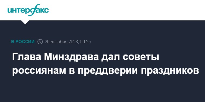 Глава Минздрава дал советы россиянам в преддверии праздников