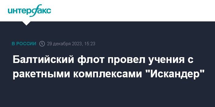 Москва. 29 декабря. INTERFAX.RU - Расчеты оперативно-тактических ракетных комплексов (ОТРК) "Искандер-М" провели тренировку по уничтожению аэродромов условного противника, сообщили в пресс-службе Балтийского флота в пятницу.