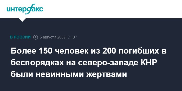 Более 150 человек из 200 погибших в беспорядках на северо-западе КНР были невинными жертвами