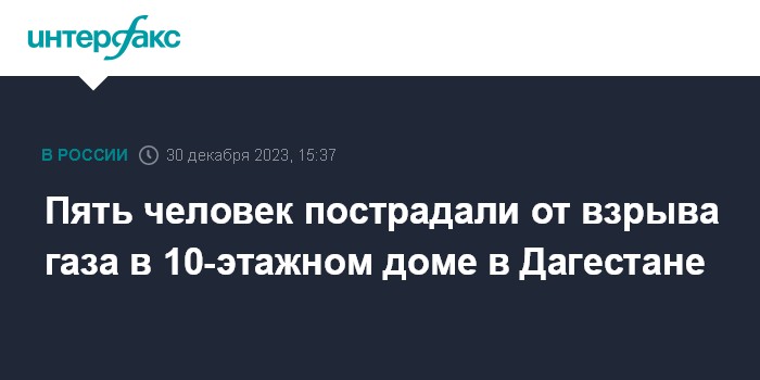 Пять человек пострадали от взрыва газа в 10-этажном доме в Дагестане