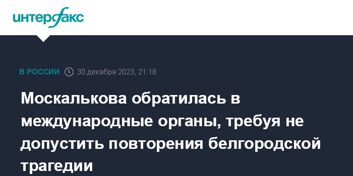 Москалькова обратилась в международные органы, требуя не допустить повторения белгородской трагедии