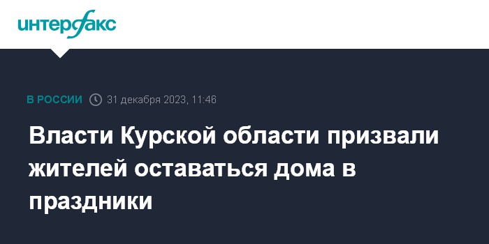 Москва. 31 декабря. INTERFAX.RU - Губернатор Курской области Роман Старовойт в связи с оперативной обстановкой призвал жителей оставаться дома в период новогодних каникул.