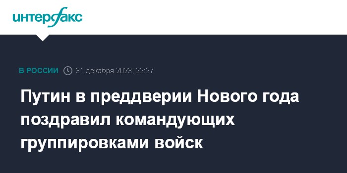 Путин в преддверии Нового года поздравил командующих группировками войск