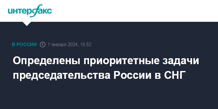 Москва. 1 января. INTERFAX.RU - Россия 1 января 2024 года стала на год председателем в Содружестве Независимых Государств . Концепция этого председательства, определяющая ключевые приоритеты работы, опубликована на сайте Кремля.