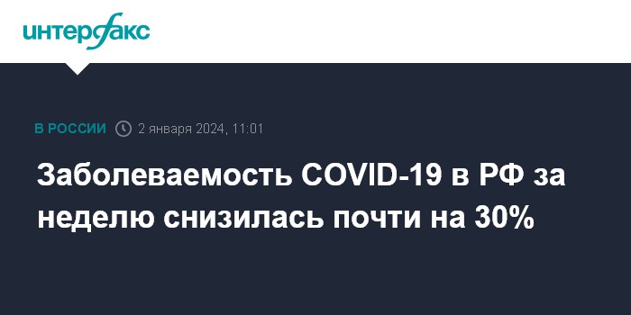Москва. 2 января. INTERFAX.RU - Показатель заболеваемости коронавирусом в России за неделю с 25 по 31 декабря снизился по сравнению с предыдущей на 28,6%, сообщили во вторник в оперативном штабе по борьбе с коронавирусной инфекцией.