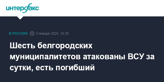 Москва. 3 января. INTERFAX.RU - Губернатор Белгородской области Вячеслав Гладков сообщил об ударах, нанесенных по территории региона за минувшие сутки.