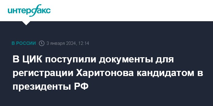 В ЦИК поступили документы для регистрации Харитонова кандидатом в президенты РФ
