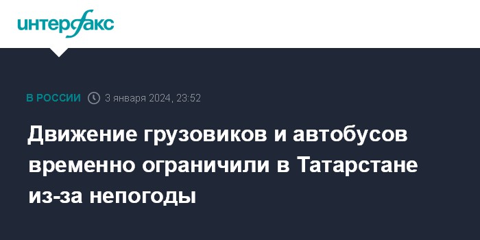 Москва. 3 января. INTERFAX.RU - Ограничение на движение грузовиков и автобусов введено временно в Татарстане, сообщает пресс-служба ГИБДД МВД республики в среду.