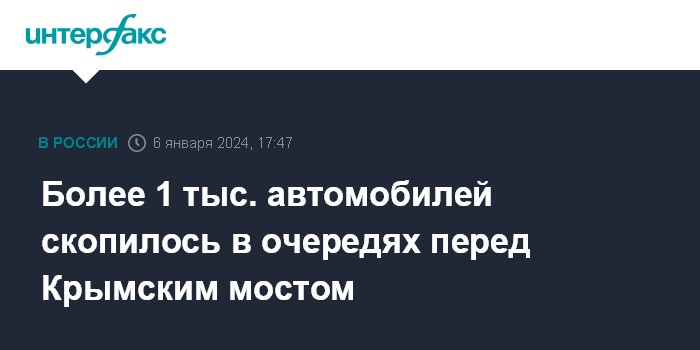 Москва. 6 января. INTERFAX.RU - Более 1 тысячи автомобилей стоит в очереди на Крымский мост с обеих его сторон к 17:00 субботы, сообщает телеграм-канал, освещающий ситуацию на автомобильных подходах к мосту.