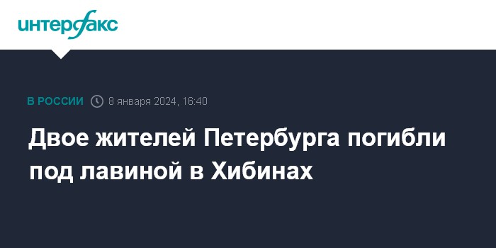 Москва. 8 января. INTERFAX.RU - Двое жителей Санкт-Петербурга в понедельник погибли во время схода лавины в районе ущелья Рамзая в Хибинских горах (Мурманская область), сообщило региональное управление СКР.