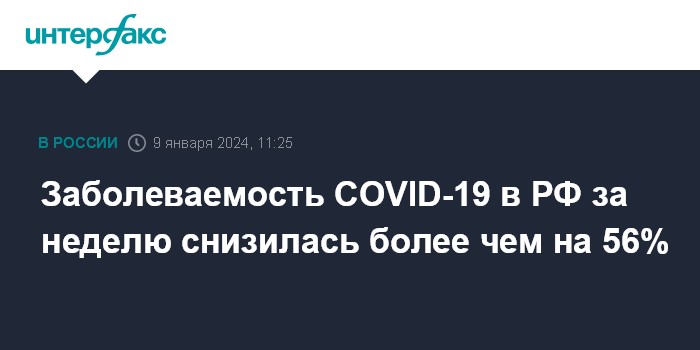 Москва. 9 января. INTERFAX.RU - Показатель заболеваемости коронавирусом в России за неделю с 1 по 7 января снизился по сравнению с предыдущей неделей на 56,4%, сообщили в оперативном штабе по борьбе с коронавирусной инфекцией.