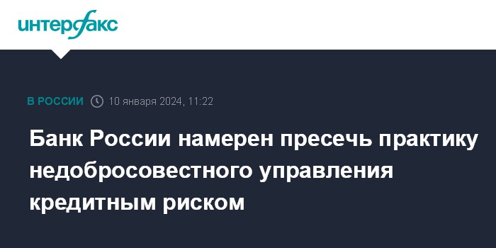 Банк России намерен пресечь практику недобросовестного управления кредитным риском