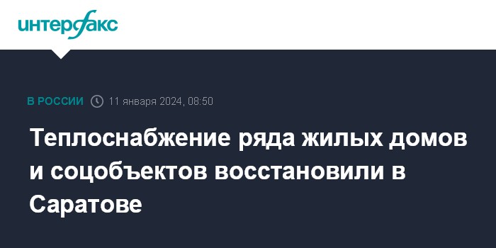 Москва. 11 января. INTERFAX.RU - Специалисты устранили последствия аварии на ТЭЦ в Заводском районе Саратова, которая привела к снижению подачи тепла в дома и ряд социальных объектов, сообщает телеграм-канал мэрии в четверг.