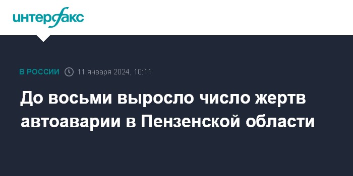 Москва. 11 января. INTERFAX.RU - Количество погибших в результате ДТП с участием минивэна и грузовика в Нижнеломовском районе Пензенской области увеличилось до восьми.
