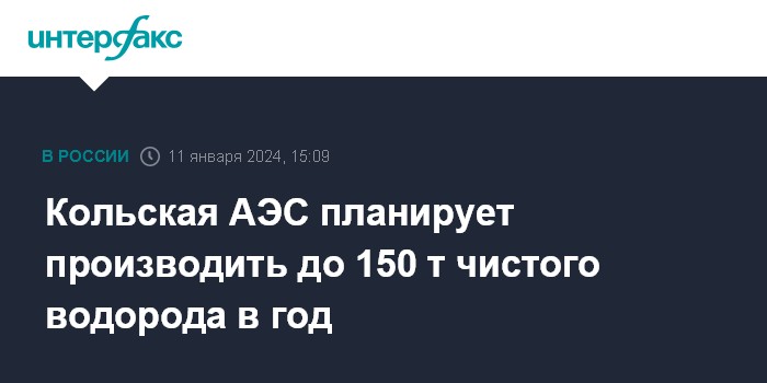 Москва. 11 января. INTERFAX.RU - Объем производства водорода на будущем стендовом испытательном комплексе на Кольской АЭС (КАЭС, Мурманская область) составит до 150 тонн водорода в год, сообщила пресс-служба станции.