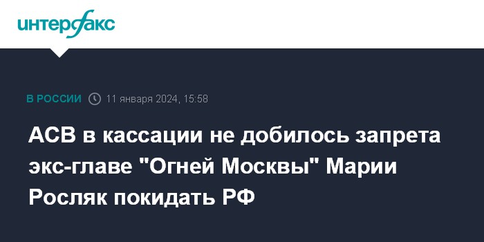 АСВ в кассации не добилось запрета экс-главе "Огней Москвы" Марии Росляк покидать РФ