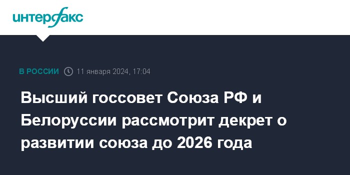 Высший госсовет Союза РФ и Белоруссии рассмотрит декрет о развитии союза до 2026 года