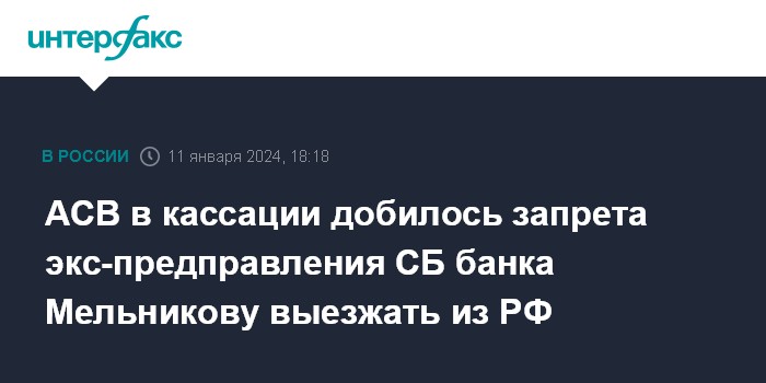 Как следует из резолютивной части постановления суда, размещенной на сайте, кассационный суд отменил судебные акты нижестоящих инстанций, отказавшие АСВ в установлении Мельникову запрета выезжать за пределы РФ.