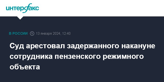 Москва. 13 января. INTERFAX.RU - Ленинский районный суд Пензы в субботу арестовал сотрудника режимного предприятия региона, уличенного в сотрудничестве с польской спецслужбой.
