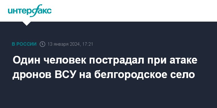 Москва. 13 января. INTERFAX.RU - Губернатор Белгородской области Вячеслав Гладков сообщил об ударе украинских дронов по территории Грайворонского городского округа.