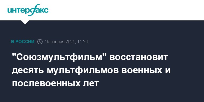 Москва. 15 января. INTERFAX.RU - Киностудия "Союзмультфильм" к 80-летию Победы планирует восстановить для широкого показа десять мультфильмов которые были созданы в годы боевых действий, сообщили в пресс-службе киностудии.