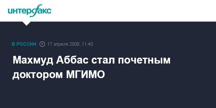 Москва. 17 апреля. INTERFAX.RU - Президенту Палестинской национальной администрации (ПНА) Махмуду Аббасу в четверг в Москве присвоено звание "Почетный доктор МГИМО".