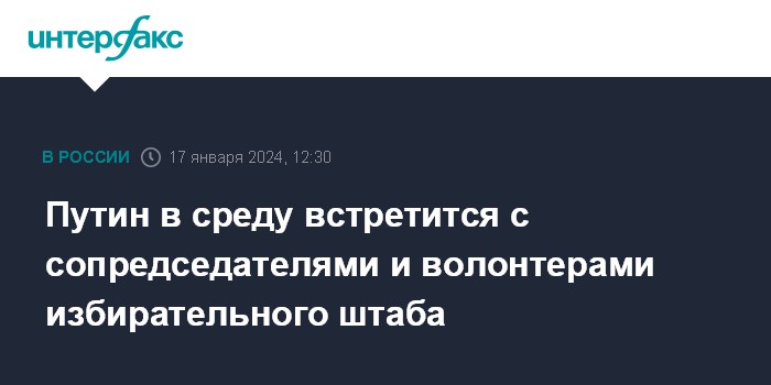Путин в среду встретится с сопредседателями и волонтерами избирательного штаба