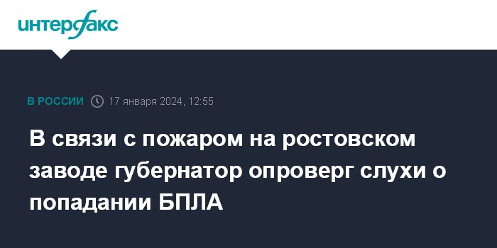 В связи с пожаром на ростовском заводе губернатор опроверг слухи о попадании БПЛА