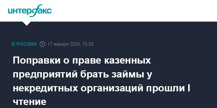 Поправки о праве казенных предприятий брать займы у некредитных организаций прошли I чтение