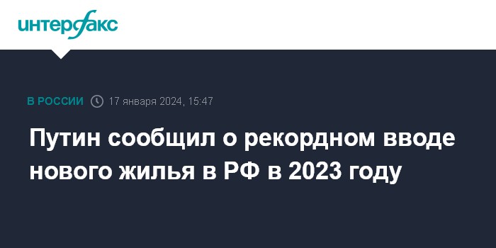 Путин сообщил о рекордном вводе нового жилья в РФ в 2023 году