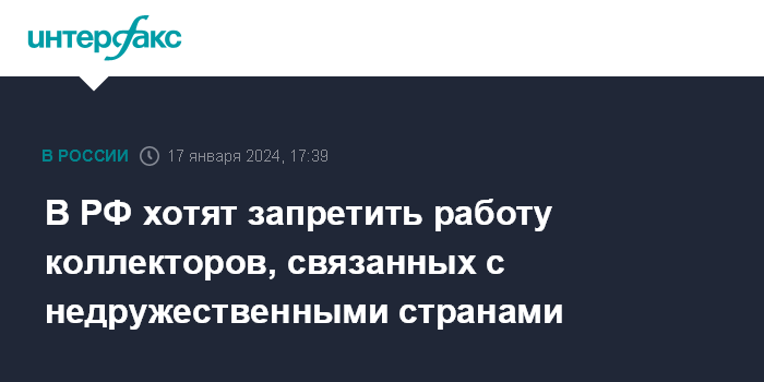 Москва. 17 января. INTERFAX.RU - Министерство юстиции подготовило проект указа президента, который запрещает в РФ работу коллекторских агентств, связанных с "недружественными" странами.