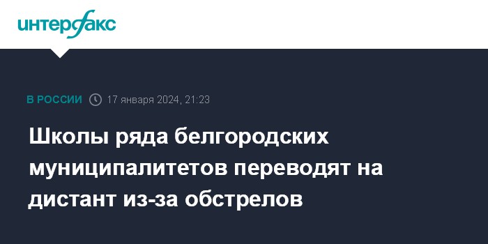 Москва. 17 января. INTERFAX.RU - Губернатор Белгородской области Вячеслав Гладков сообщил о введении дистанционного обучения школьников и студентов, получающих среднее профессиональное образование (СПО), в приграничных и ряде других муниципалитетов региона из-за оперативной обстановки.