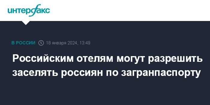Российским отелям могут разрешить заселять россиян по загранпаспорту