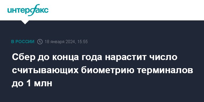Москва. 18 января. INTERFAX.RU - Сбербанк до конца года нарастит с 200 тысяч до 1 млн количество терминалов, позволяющих проводить банковские операции с помощью биометрии, сообщил журналистам в четверг глава банка Герман Греф.