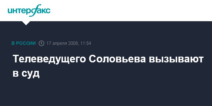 Москва. 17 апреля. INTERFAX.RU - Телеведущий Владимир Соловьев сообщил, что его вызывают в столичный суд в качестве ответчика по иску в отношении группы лиц.